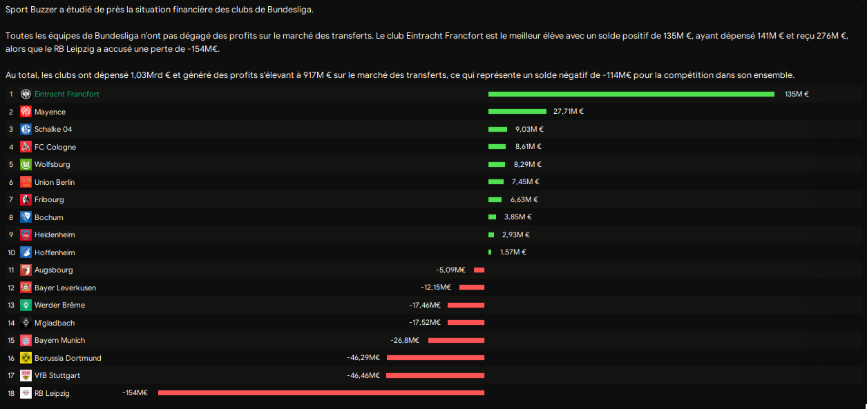 Un profit de 135M net sur le mercato qui nous place comme le meilleur élÚve de Bundesliga.