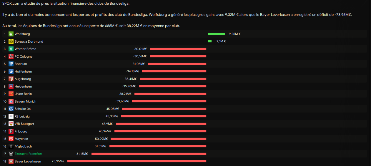 Mais en terme de pertes et profits, sans prendre en compte les revenus mercato, nous sommes en fond de classe.