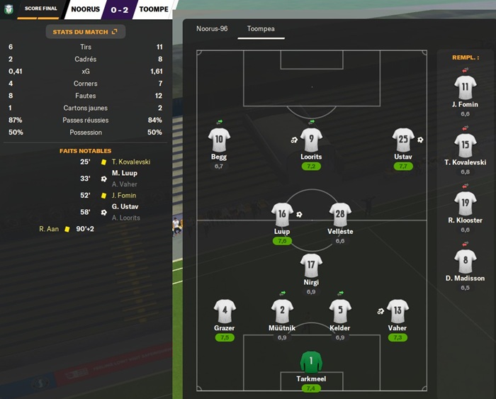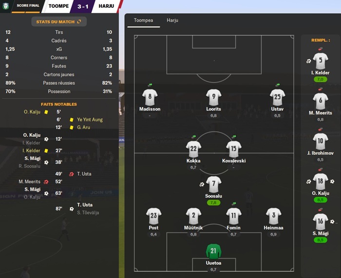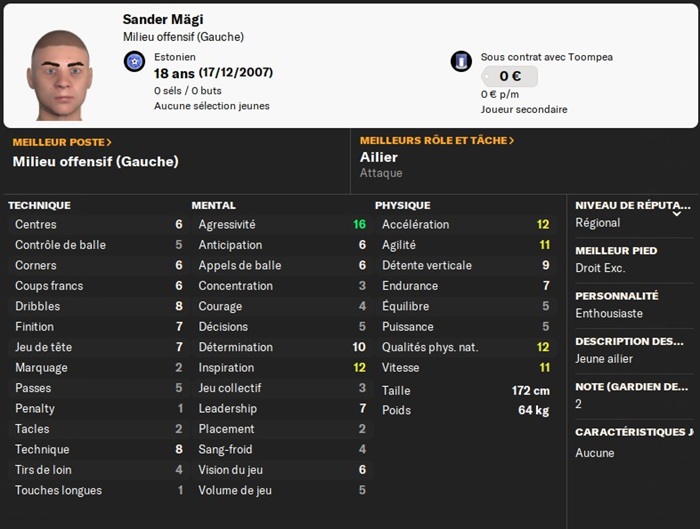Le joueur possédant la 2ème meilleure note moyenne est mon arrière droit remplaçant Vaher. Il a la malchance de jouer au même poste que le capitaine du club et meilleur joueur de mon noyau : Heinmaa.