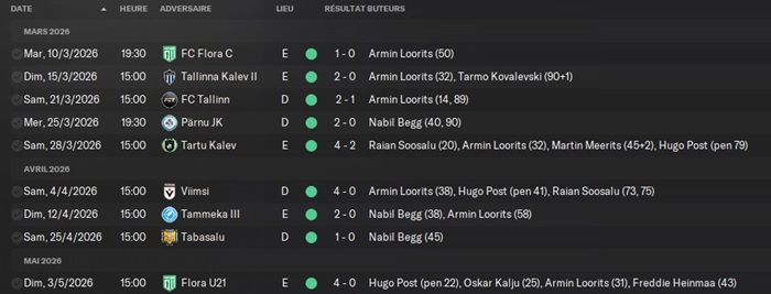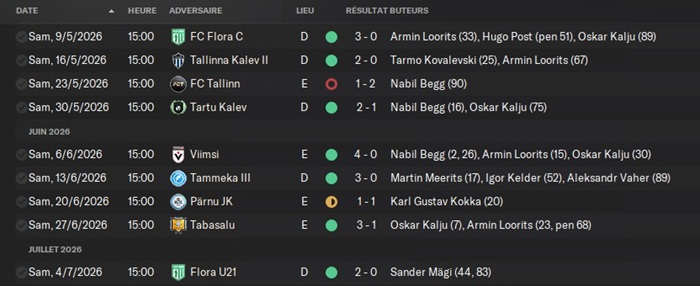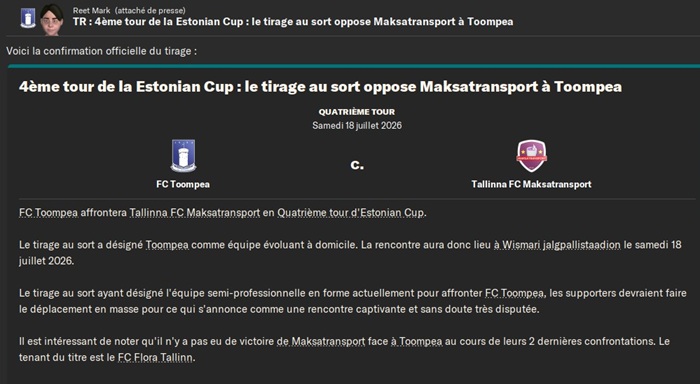 J’y affronterai un club leader d’un des groupes de D4 estonienne.