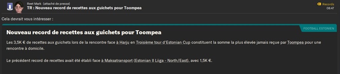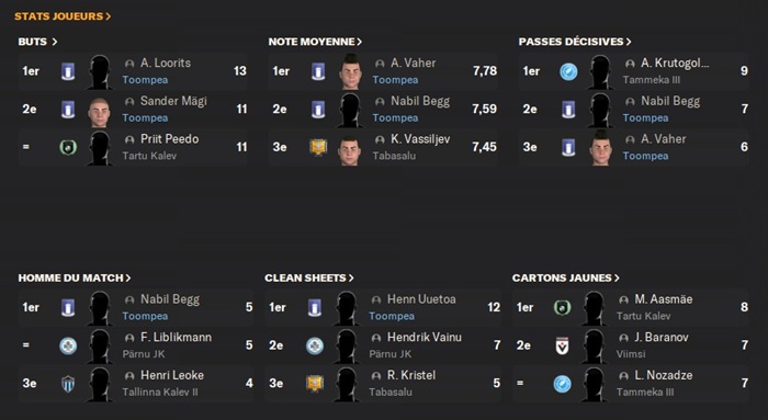 Au niveau des stats individuelles en championnat, Loorits est solidement en tête du classement des buteurs juste devant ma nouvelle recrue !