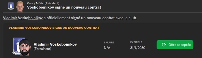 Je me dois également de souligner la très bonne saison de mon gardien ainsi que de mon arrière droit (remplaçant) Vaher que j’ai recruté lors du dernier mercato.
