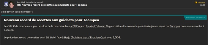 Ce match mâa permis de battre mon affluence et mes recettes records (ça va souvent de pair)