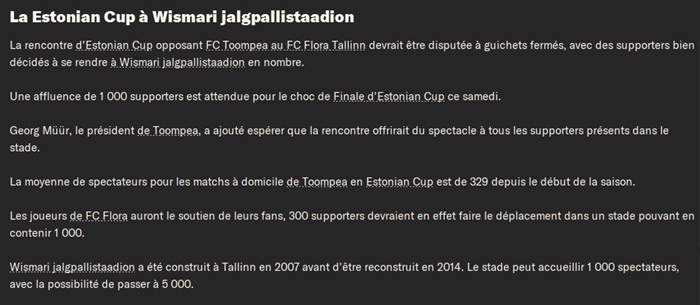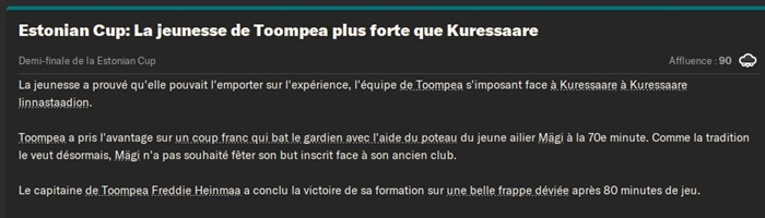Le FC Toompea jouera donc la premiĂšre finale de coupe dâEstonie de son histoire alors quâil milite encore en D3