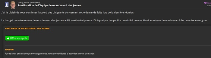 Jâai offert un contrat Ă celui-ci ainsi quâĂ 4 autres joueurs afin de renforcer mon Ă©quipe U19.