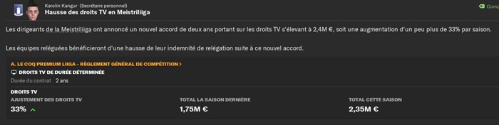 Par ailleurs, comme vous pouvez le constater jâessaie de me faire du fric par tous les moyens ; que ce soit en prĂȘtant des joueurs ou en vendant mon adjoint