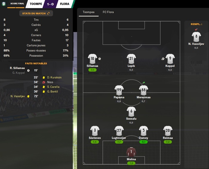 Ce match nâest de plus pas reprĂ©sentatif de lâĂ©quipe de Flora qui disputera le championnat.