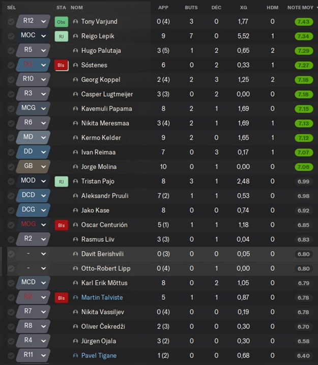 Du cĂŽtĂ© des transferts libres/gratuits je me suis dĂ©barrassĂ© de joueurs qui mâavaient Ă©tĂ© utiles de la D2 Ă la D4 estonienne mais nâavaient clairement plus le niveau pour le club.