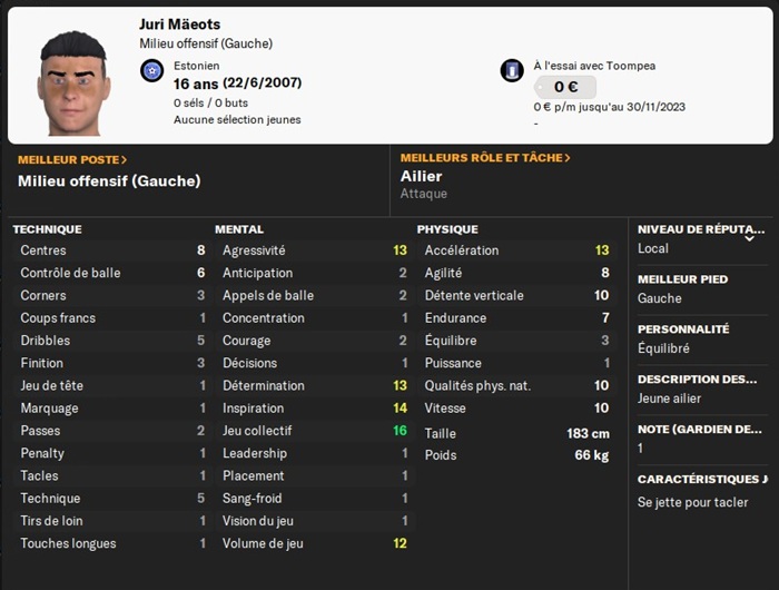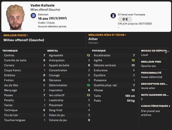 Les ailiers gauches semblent intĂ©ressĂ©s par une carriĂšre au FC Toompea ! Voici le 2Ăšme joueur Ă©voluant Ă ce poste Ă qui jâoffre un contrat.