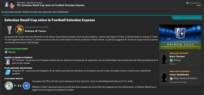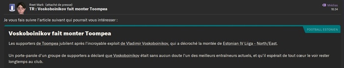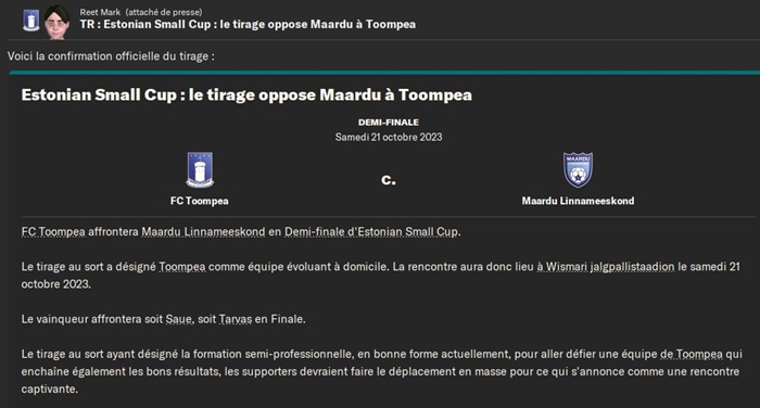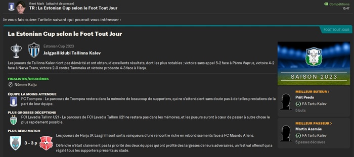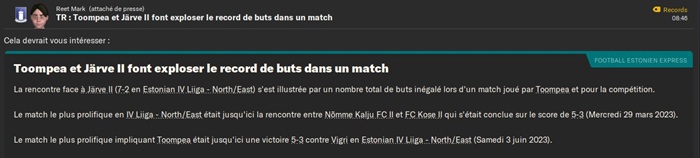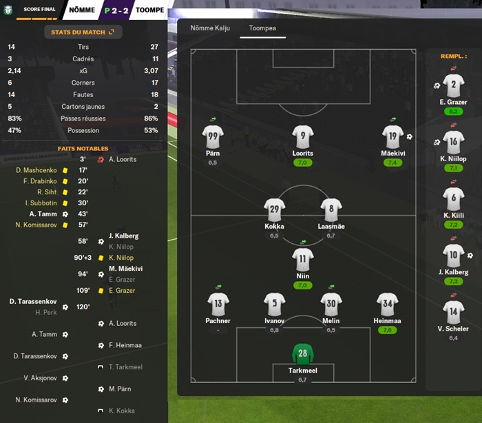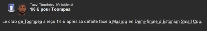 Le plus triste dans cette dĂ©faite câest quâen cas de victoire jâaurais rencontrĂ© un club de D5 estonienne qui nâavait jouĂ© aucun club de D1, D2 ou D3 estonienne jusque lĂ