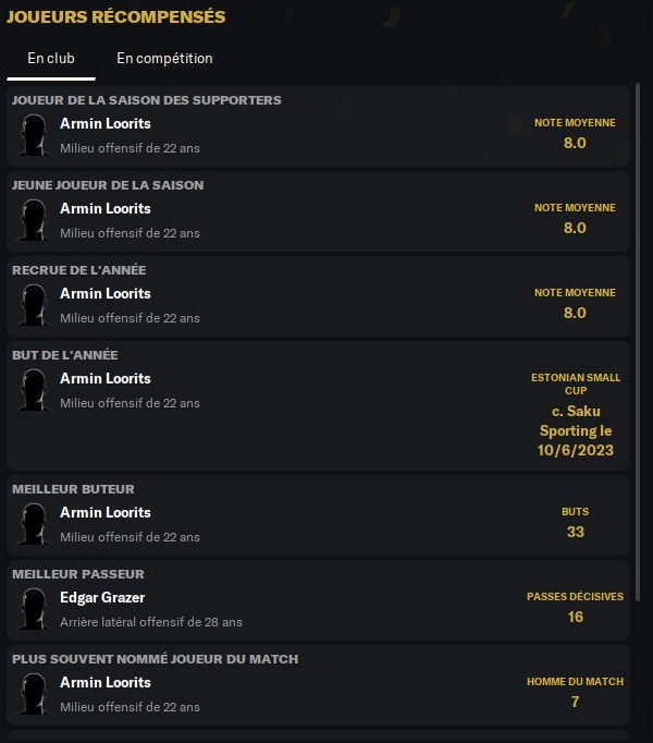 Je pense que Loorits a mis tout le monde dâaccord cette saison. Ces stats en championnat sont tout simplement hallucinantes : 26 buts inscrits, 8 passes dĂ©cisives, 6 fois nommĂ©s homme du match et 8,22 de note moyenne en 20 matchs jouĂ©s