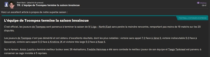 Ă bientĂŽt pour la suite de mes aventures en D5 estonienne avec des dirigeants de plus en plus exigeants