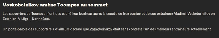 Jâai validĂ© ma montĂ©e en D5 estonienne 7 matchs avant la fin du championnat