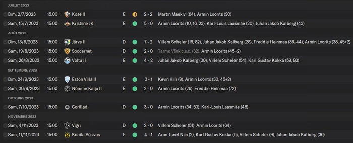 Ce club a survolé la 4Úme division estonienne avec un magnifique bilan de 72 points sur 78 (3 matchs nuls), 58 buts inscrits pour 9 encaissés