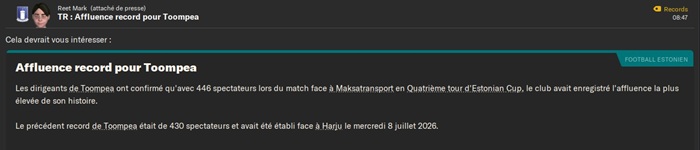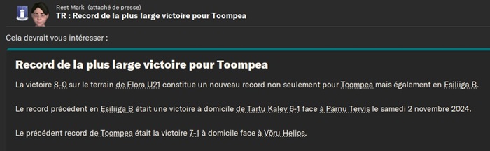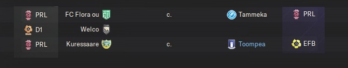 @Sythax : Ces clubs ne peuvent pas ĂȘtre dans la mĂȘme division que Flora mais pas de soucis entre eux. Il y a Ă©normĂ©ment dâĂ©quipe B, U19, U21 en Estonie. La saison passĂ©e il y a eu un barrage pour la montĂ©e entre une Ă©quipe U19 et U21 dâun mĂȘme club ![]()