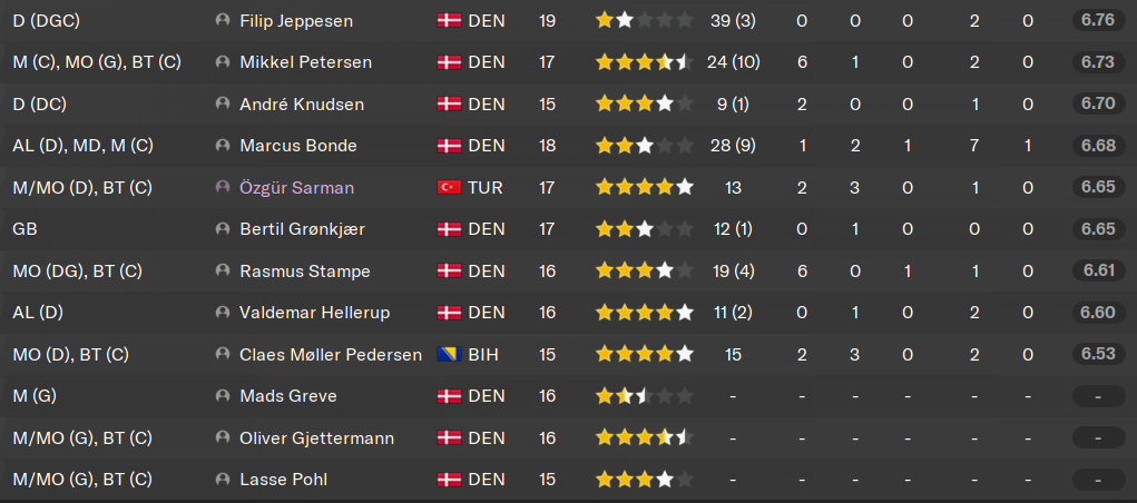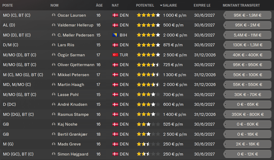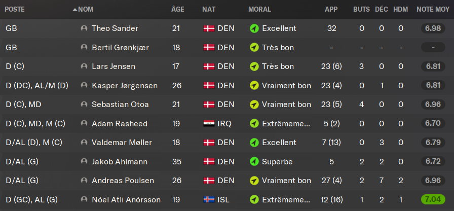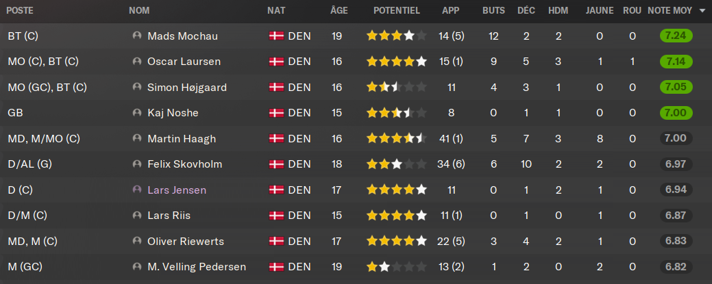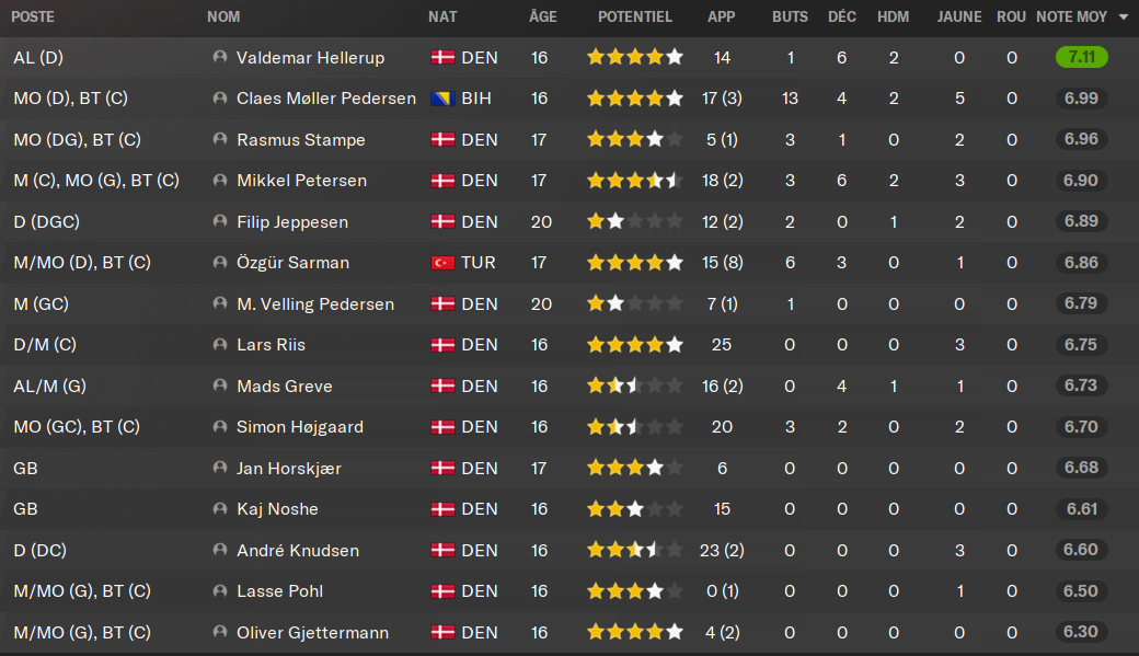 (DC) : le petit Lars, dĂ©sormais 17 ans, a trĂšs bien progressĂ© en 18 mois chez les U19. Il vient prendre de lâexpĂ©rience et des titularisations en Ă©quipe premiĂšre. Il a un trĂšs gros mental et dĂ©sormais un bon physique, il ne lui reste plus quâĂ sâaffiner techniquement. Il a encore le temps, mais il fait dĂ©jĂ le bonheur des U20 danois.