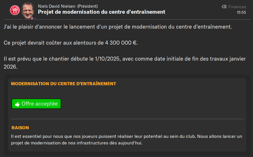 4,3M⏠pour moderniser le centre dâentrainement. Câest merveilleux, je ne mâattendais pas Ă une telle somme. Tout les voyants sont au vert.