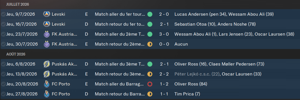 Nous avons atteint les barrages contre le FC Porto en battant des Ă©quipes de notre niveau je dirai. Rien de facile, mais nous avons Ă©tĂ© supĂ©rieurs. Malheureusement, contre les portugais, mĂȘme si nous nous sommes bien battus, nous sommes Ă©liminĂ©s.