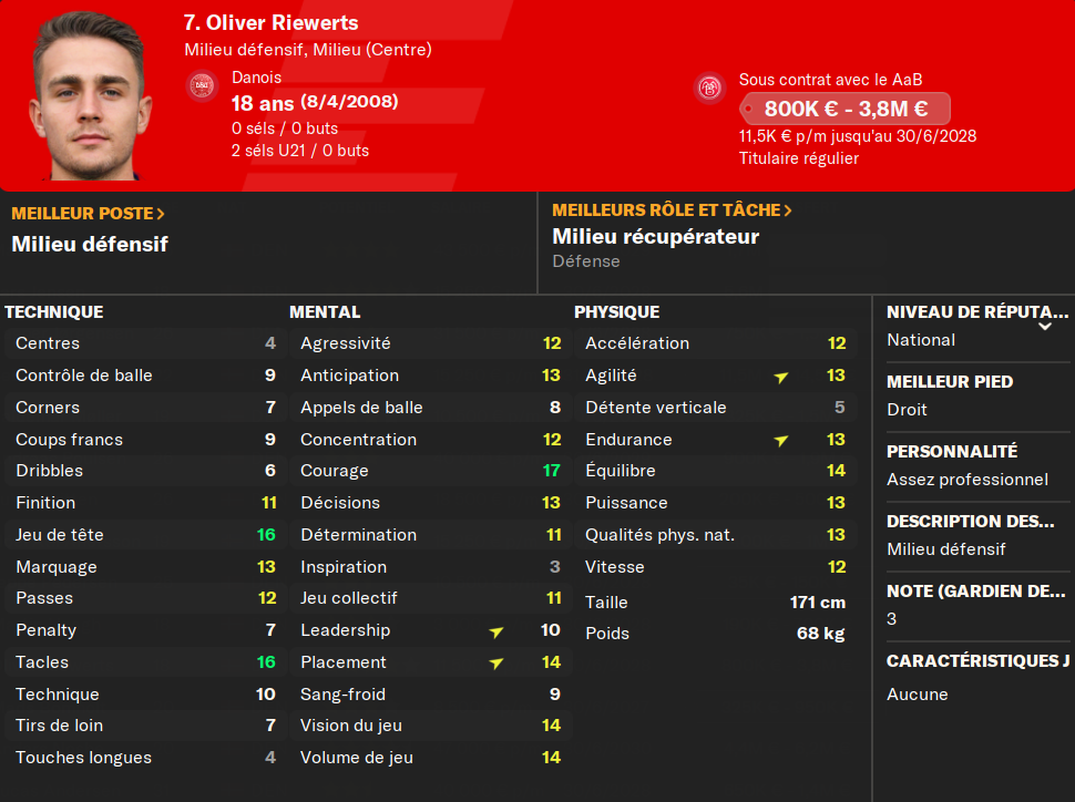 (MOC) - Regen : le petit Anders me plait beaucoup. DĂ©jĂ trĂšs bon techniquement sur les caractĂ©ristiques clĂ©s, il est le leader de mon Ă©quipe U19. Il a largement le temps de progresser et il est lui aussi lâavenir de mon club.