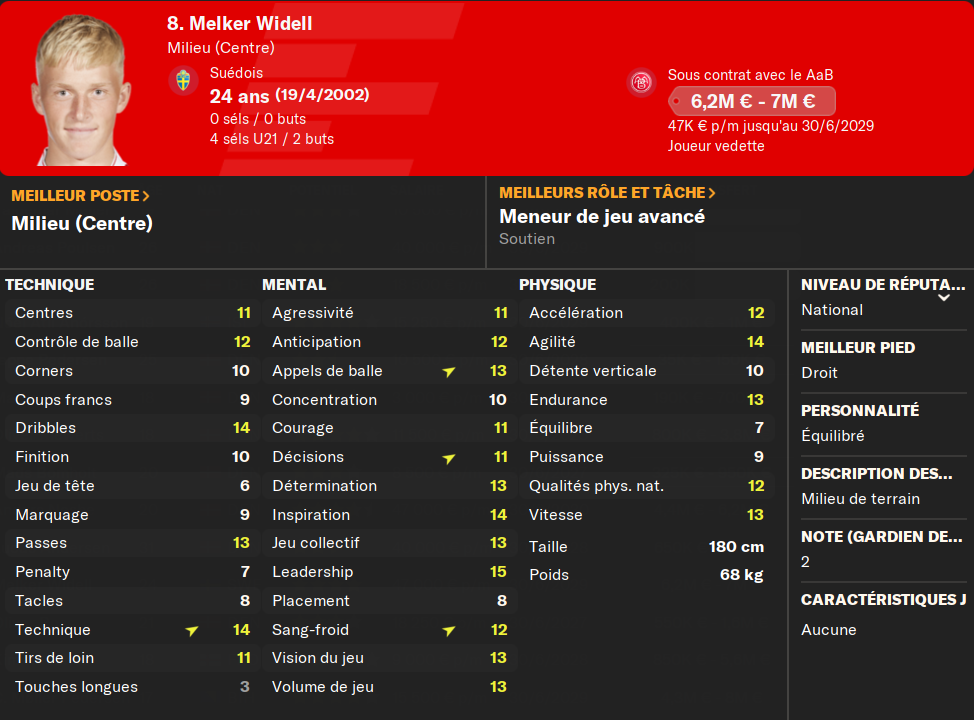 (MC) : Melker déçoit trĂšs rarement. Complet et plutĂŽt portĂ© vers lâavant, ce milieu central Ă vocation offensive est dans le coeur du jeu et est un parfait relai de mon MOC pour prendre en mains les attaques de mon Ă©quipes, en partant de derriĂšre. Câest un peu mon MODRIC Ă moi voyez⊠Bien cĂŽtĂ©, il a Ă©tĂ© pistĂ© cet Ă©tĂ© par des clubs hollandais et turcs. Il restera bel et bien chez nous.