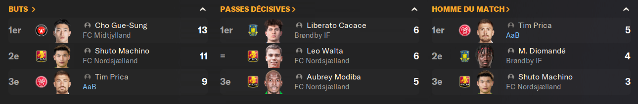 A part ADIL EL BAKHTOURI et Valdemar Hellerup qui caracolent en tĂȘte des statistiques, rien dâincroyable. Un peu déçu par Anders Damgaard, qui malgrĂ© ses 10 passes dĂ©cisives, ne marquent pas la saison de son empreinte.