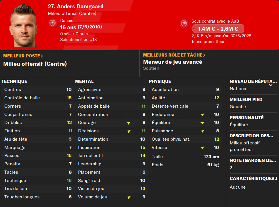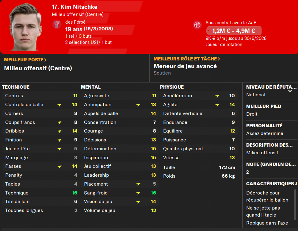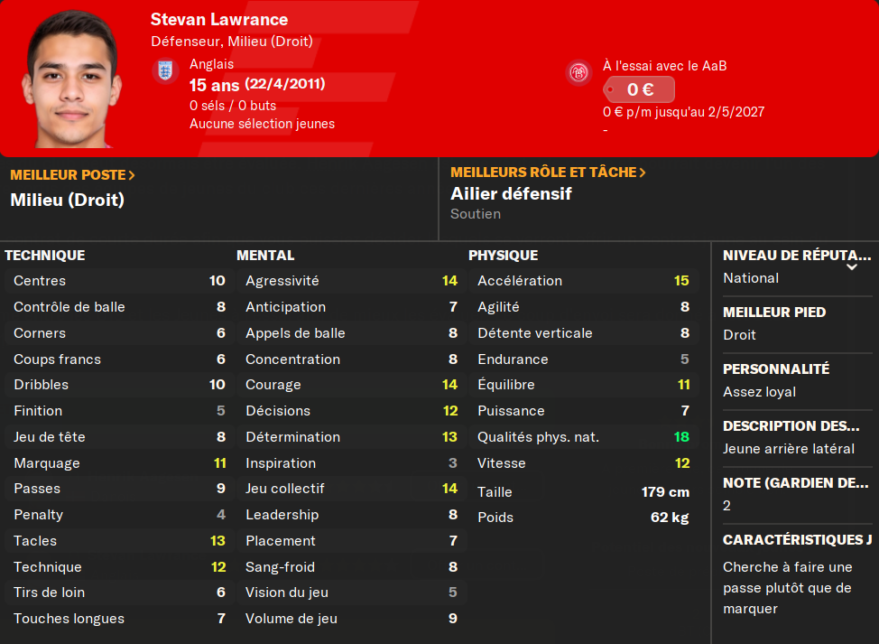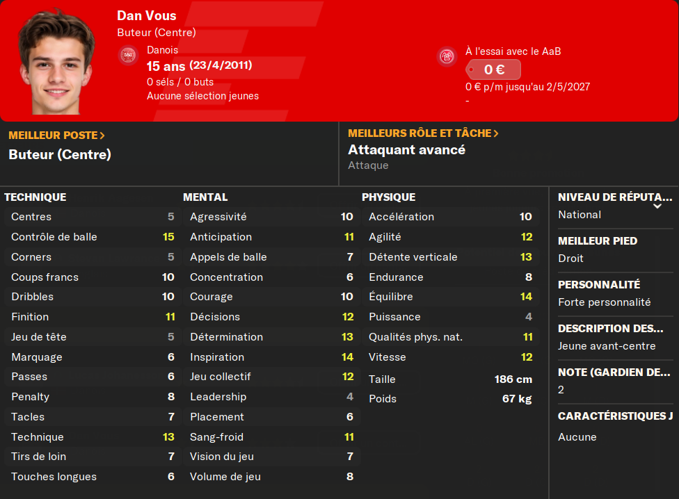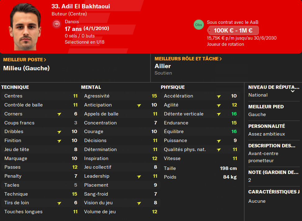 (BU) : un buteur de plus va venir garnir les rangs de mon équipe U19. Je préfÚre déjà ce joueur au précédent. PlutÎt complet, il a potentiellement un avenir chez nous.