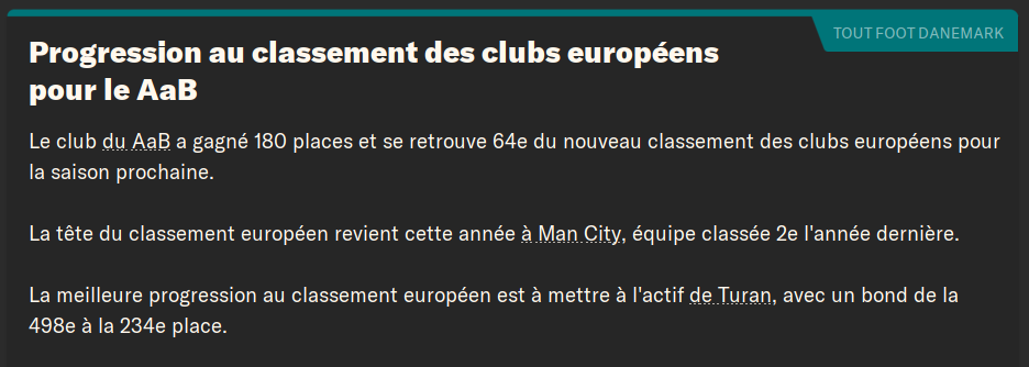 ForcĂ©ment, avec cette belle saison et cette finale de Conference League, nous gagnons 180 places au classement des clubs europĂ©ens. Une progression fulgurante et bien sĂ»r inattendue. EspĂ©rons que ce nâest que le dĂ©but⊠!