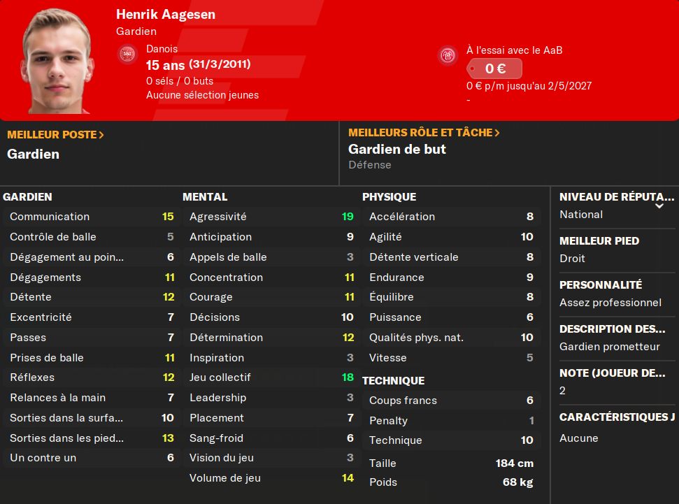 (GB) : Henrik est vu comme le nouveau Peter Schmeichel. Rien que ça ! Câest pour moi le joueur au plus fort potentiel cette annĂ©e. En dĂ©ficit de gardien de qualitĂ© dans mon Ă©quipe U19, voilĂ que cette arrivĂ©e vient rĂ©gler mon problĂšme. Le futur dâAab et du Danemark, Ă nâen pas douter !