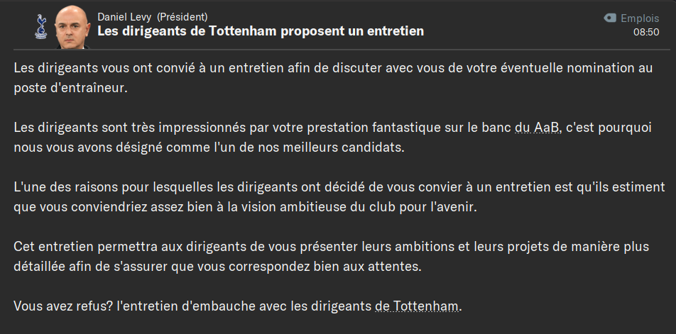 @Coach_Arribas : Nitschke est plutĂŽt dĂ©cevant oui. Je pense que câest mon organisation tactique. Il a dĂ» mal Ă trouver sa place, mĂȘme si les rĂ©sultats sont trĂšs bons. Je pense changer 2-3 consignes individuelles. Laursen et Damgaard, sont au top, mais pour le deuxiĂšme, câest parce quâil joue que les matchs contre les petites Ă©quipes. Les finances du club me permettent encore de garder mes joueurs Ă coup de contrats en or. Pour combien de temps ?