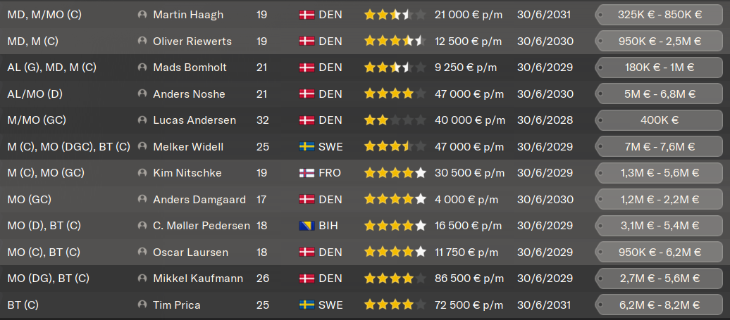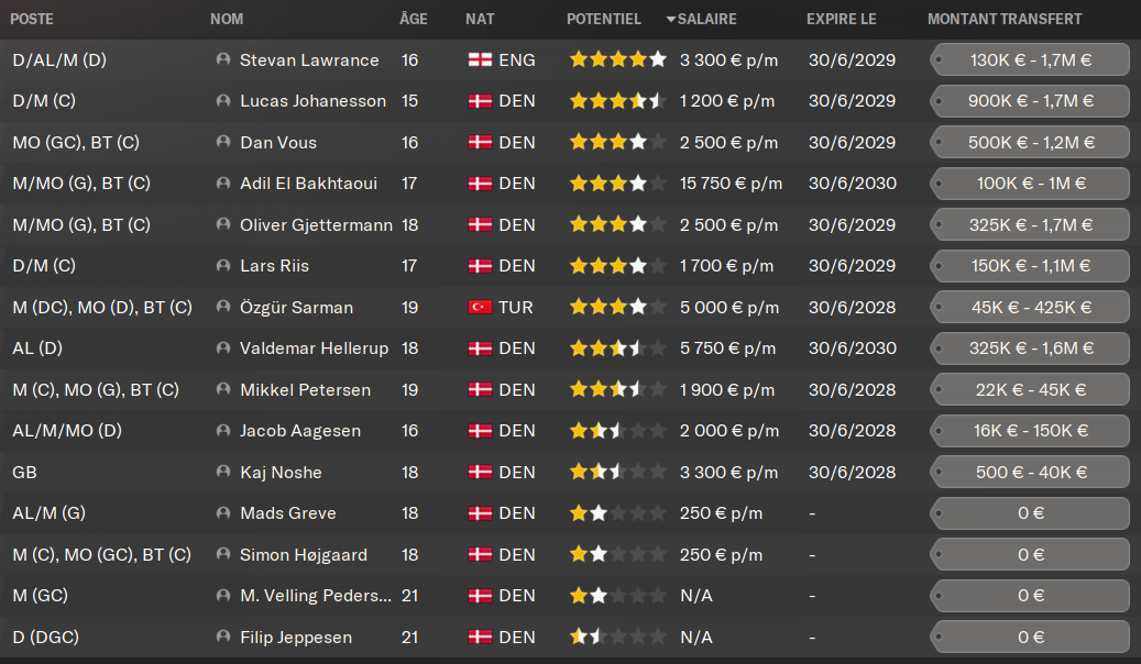 Avant de mâenquiller quelques verres ce soir et de ne pas forcĂ©ment ĂȘtre trĂšs frais, je profite de ce moment dâaccalmie pour vous prĂ©senter ma cinquiĂšme saison au club. Le statut de notre club a indĂ©niablement changĂ© ce Ă©tĂ©. Dans la course au titre depuis 2 ans, nous avons finalement dĂ©crochĂ© le graal en fin de saison derniĂšre avec un magnifique doublĂ©. Nous devons ces deux titres Ă la qualitĂ© de notre saison, mais Ă©galement Ă celle catastrophique du meilleur club du pays. Mon club nâest pas encore au-dessus des autres au Danemark et il faudra compter sur le FC Copenhague et Brondby lâannĂ©e prochaine, qui ne vont certainement pas nous laisser si facilement rĂ©gner sur le championnat.