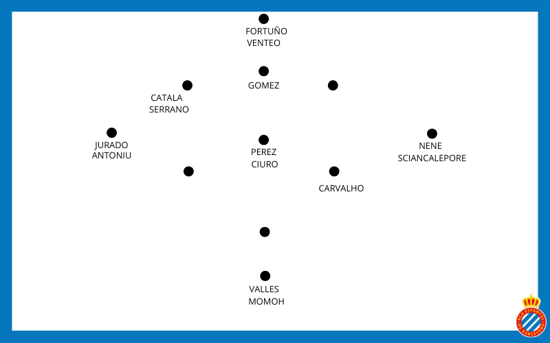 LâĂ©quipe perd donc sa place de deuxiĂšme meilleure dĂ©fense du championnat mais reste tout de mĂȘme quatriĂšme, ce qui est trĂšs bien. Au niveau de lâattaque, mĂȘme sâil y a eu un mieux, lâĂ©quipe reste 16e. Quant Ă la capacitĂ© de possession de lâEspanyol, elle reste inchangĂ©e avec 62% en moyenne (2e meilleur du championnat). La qualitĂ© de passe des joueurs obtient un trĂšs bon pourcentage : 82% (2e du championnat) tandis que les dribbles auront moins prĂ©cis quâĂ lâaller avec un total de 350 dribbles (12e du championnat).