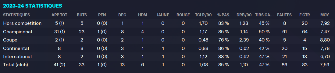 Câest une saison plus que rĂ©ussie. Je suis parvenu Ă confirmer les espoirs placĂ©s en moi la saison derniĂšre. Jâai Ă©tĂ© Ă©pargnĂ© par les blessures (Ă©longation pendant la trĂȘve hivernale), ce qui mâa permis de ne pas perdre ma place de titulaire. Je cadre moins de 50% de mes tirs, jâai des progrĂšs Ă faire de ce cĂŽtĂ© lĂ . Et puis je sais pas centrer. Câest pas mon taff en mĂȘme tempsâŠ