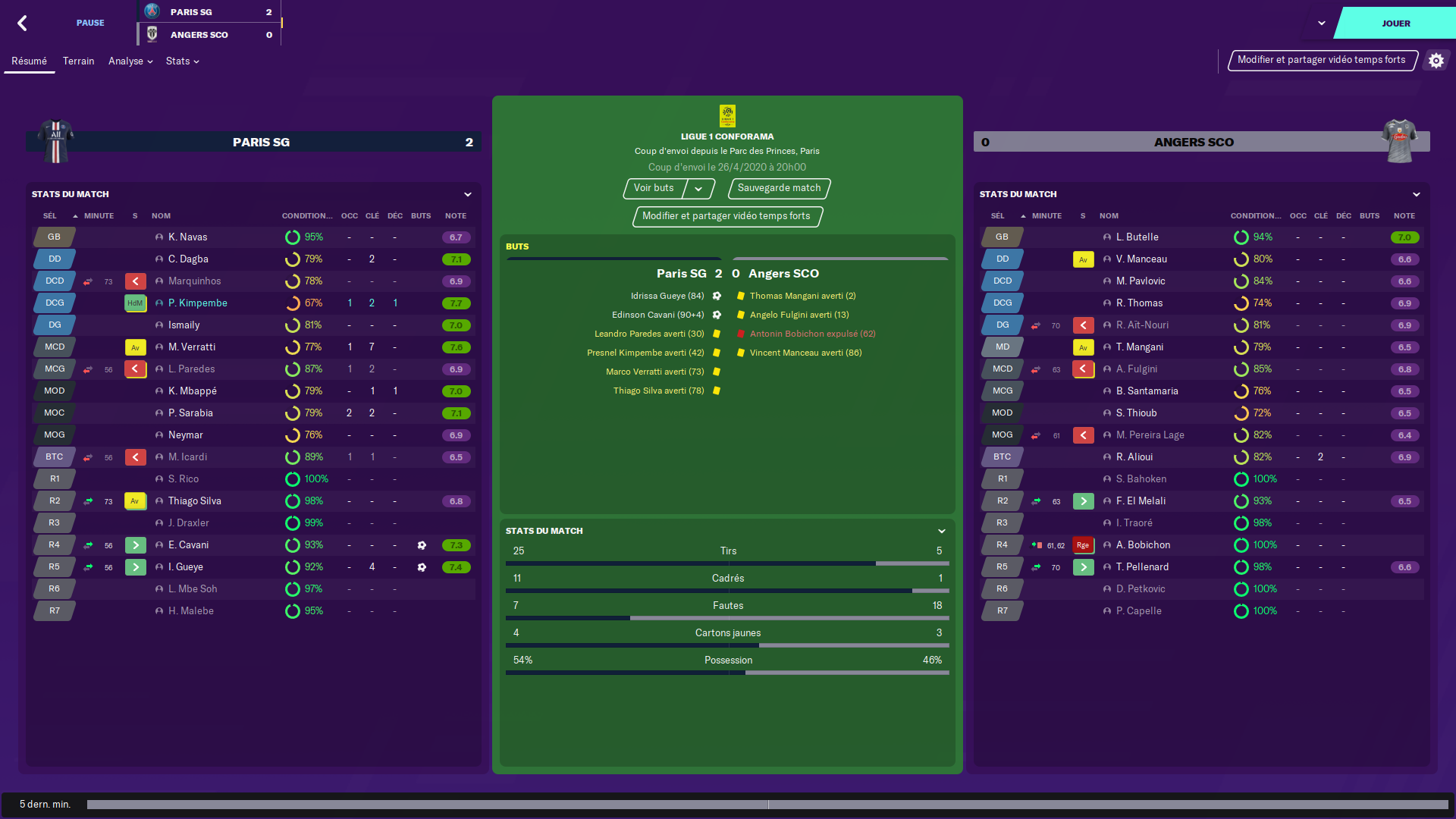 La seconde mi-temps part sur le même tempo, le SCO est incapable de prendre durablement le jeu à son compte et sur un corner Saliba fait le break et nous jette dans les cordes…