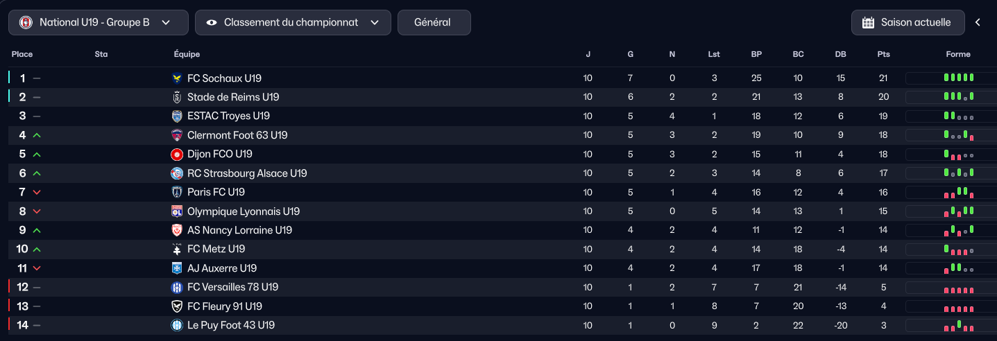 National U19 - J9 | 6-1 | J. Viennet (21, 29, 68) S. Ndiaye (25) I. Touré (44) E. Albouy (89sp) | E. Albouy (21) J. Rakotomanga (25) S. Ndiaye (29) J. Herrmann (44) C. AndrÚs (68) | J. Viennet (9.6) |