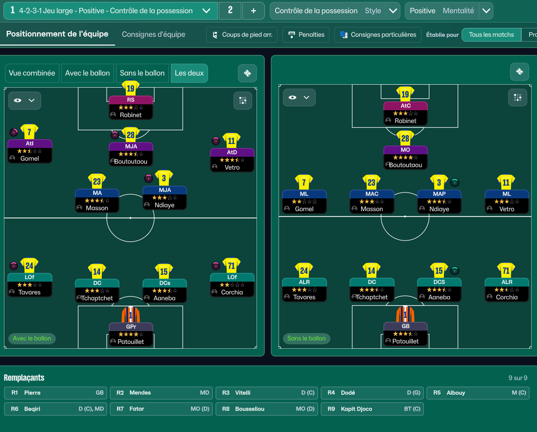 Pour cette huitiÚme journée, je tente une nouvelle approche tactique, en jouant avec un offensif de moins.