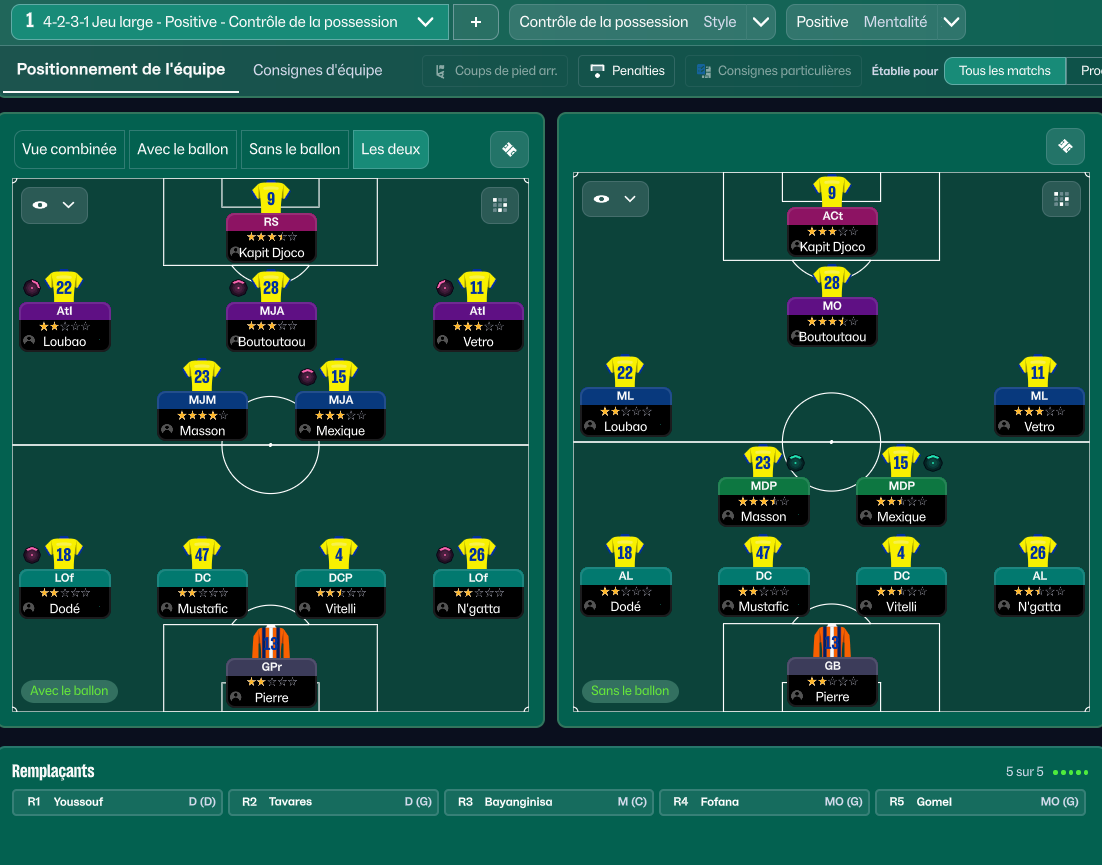| K. DJOCO (47) S. LOUBAO (62) J. MEXIQUE (90+4) | 29 | Tir(s) | 12 | A. KANOTÉ (79) |