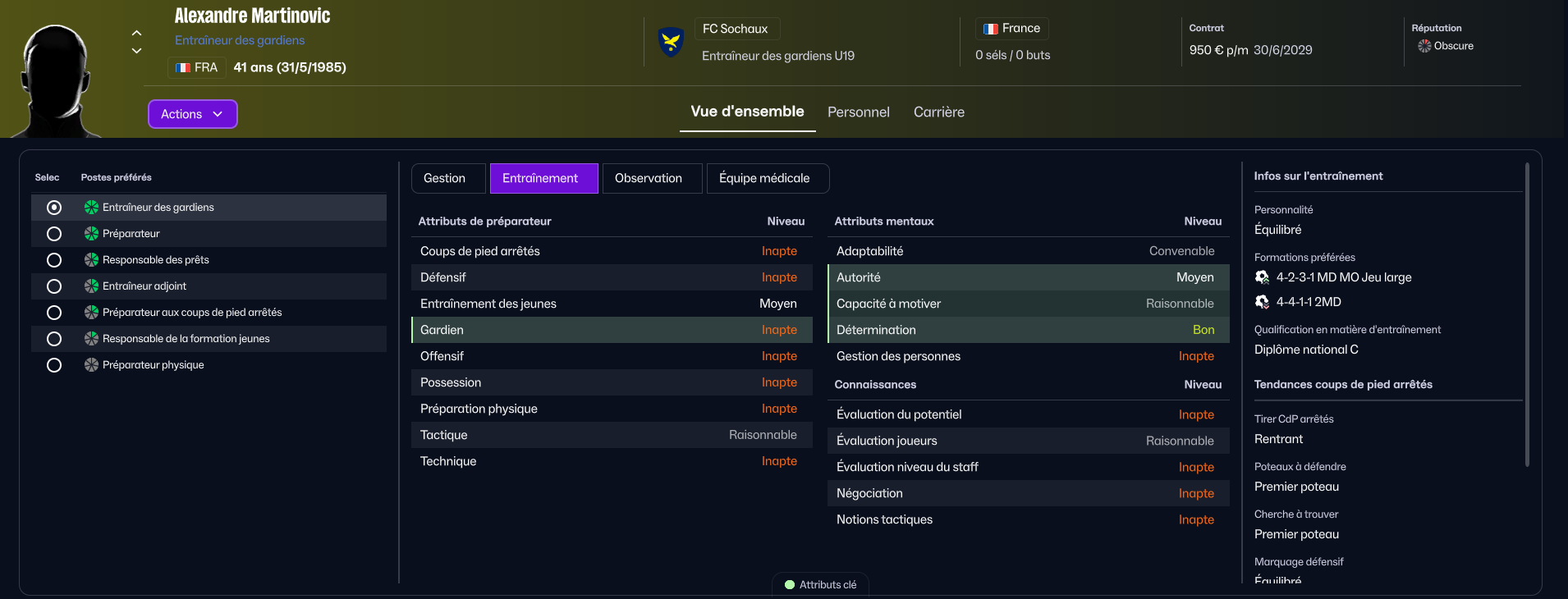 | Entraineur réserve | 44 | 4.8k€ | Juin 2027 | ||