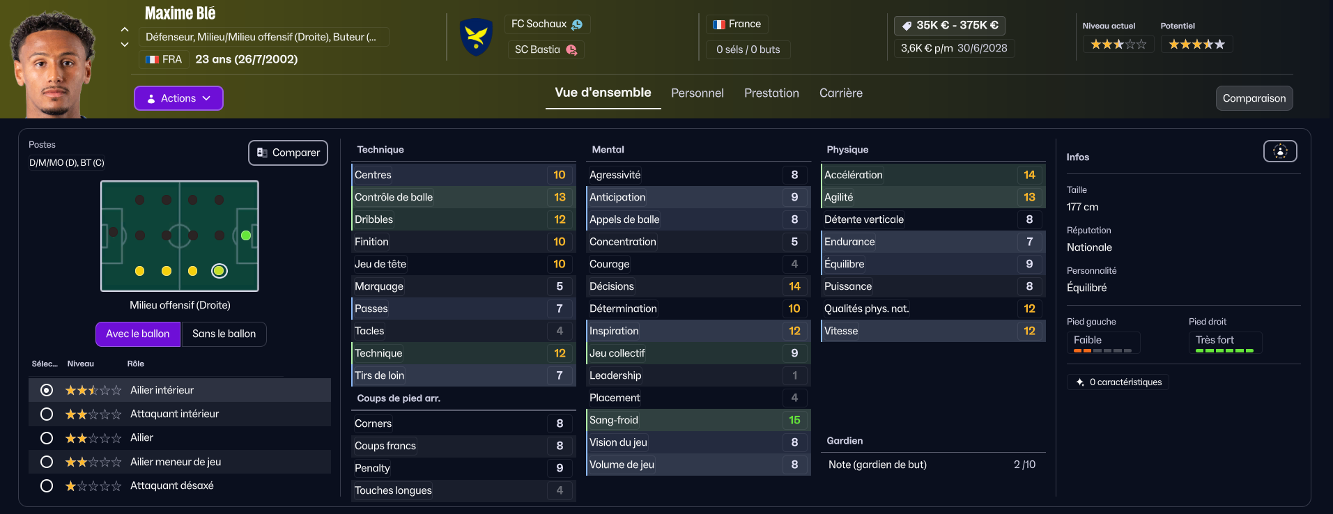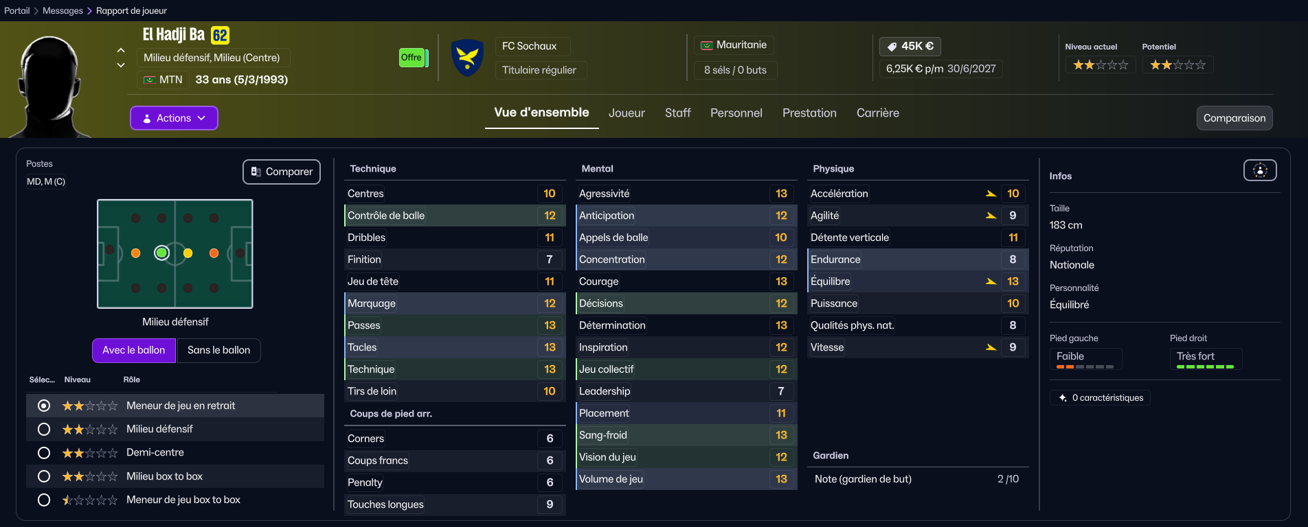 On prolonge celui qui a été notre meilleur joueur la saison dernière : Aymen BOUTOUTAOU. Notre milieu offensif est désormais lié à Sochaux jusqu’en 2029 avec un salaire qui passe à 29k€ par mois.