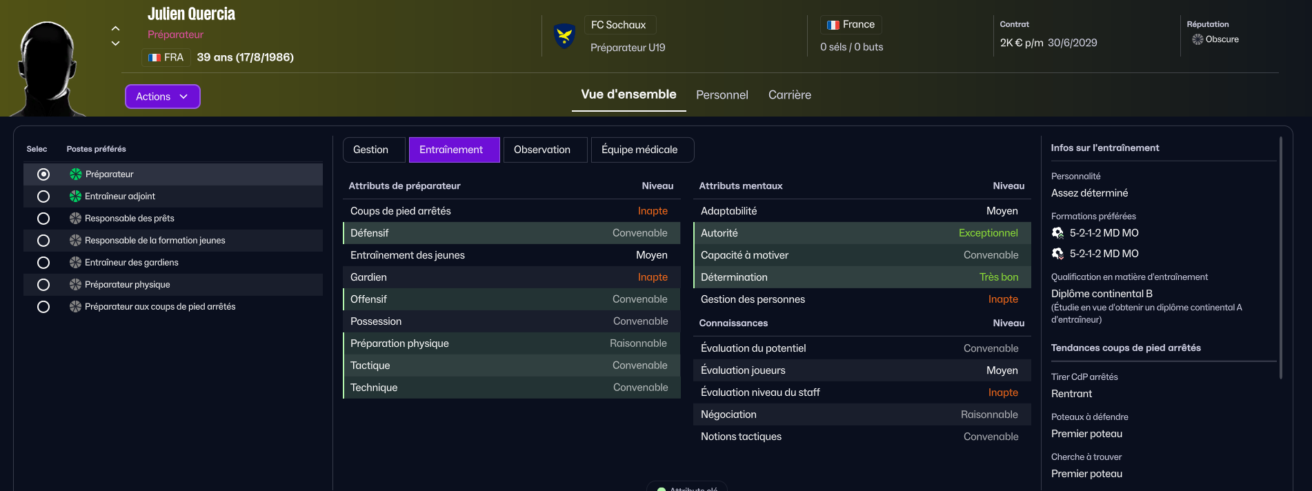 | Entraineur GB | 47 | 5k€ | Juin 2028 | ||