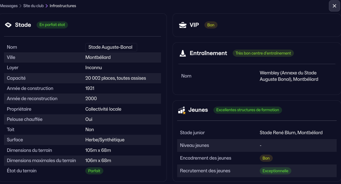 | Stade Auguste-Bonal | 16 300 spect. | 19 janvier 2027 | Coupe de France - 16Ăšme de Finale | |