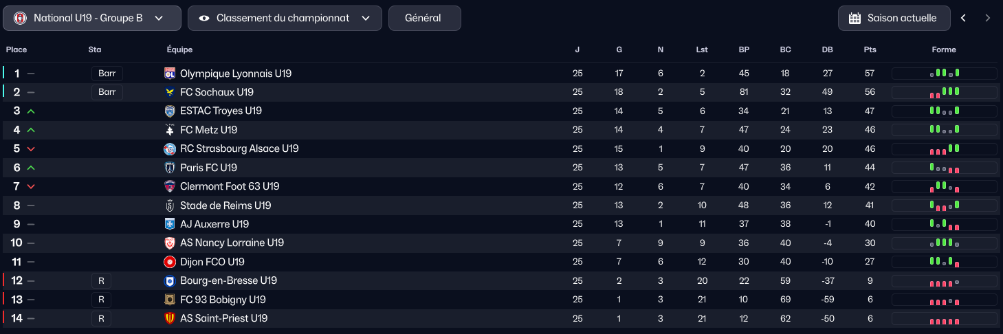 National U19 - J25 | 2-3 | E. Van Howe (12) T. Frascaro (52) | S. Ndiaye (12, 52) | S. Ndiaye (7.9) |