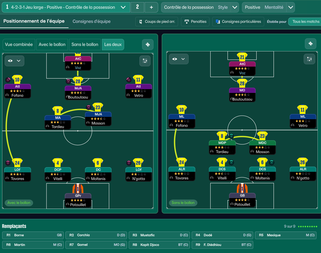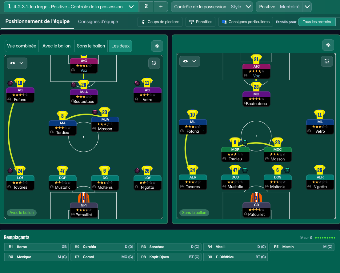 | J. VETRO (1) Ă. NâGATTA (5) B. FOFANA (27) B. GOMEL (61) K. DJOCO (84) | 2.97 | xG | 1.31 | M. COURCOUL (26) S. CHĂRIF (54) |