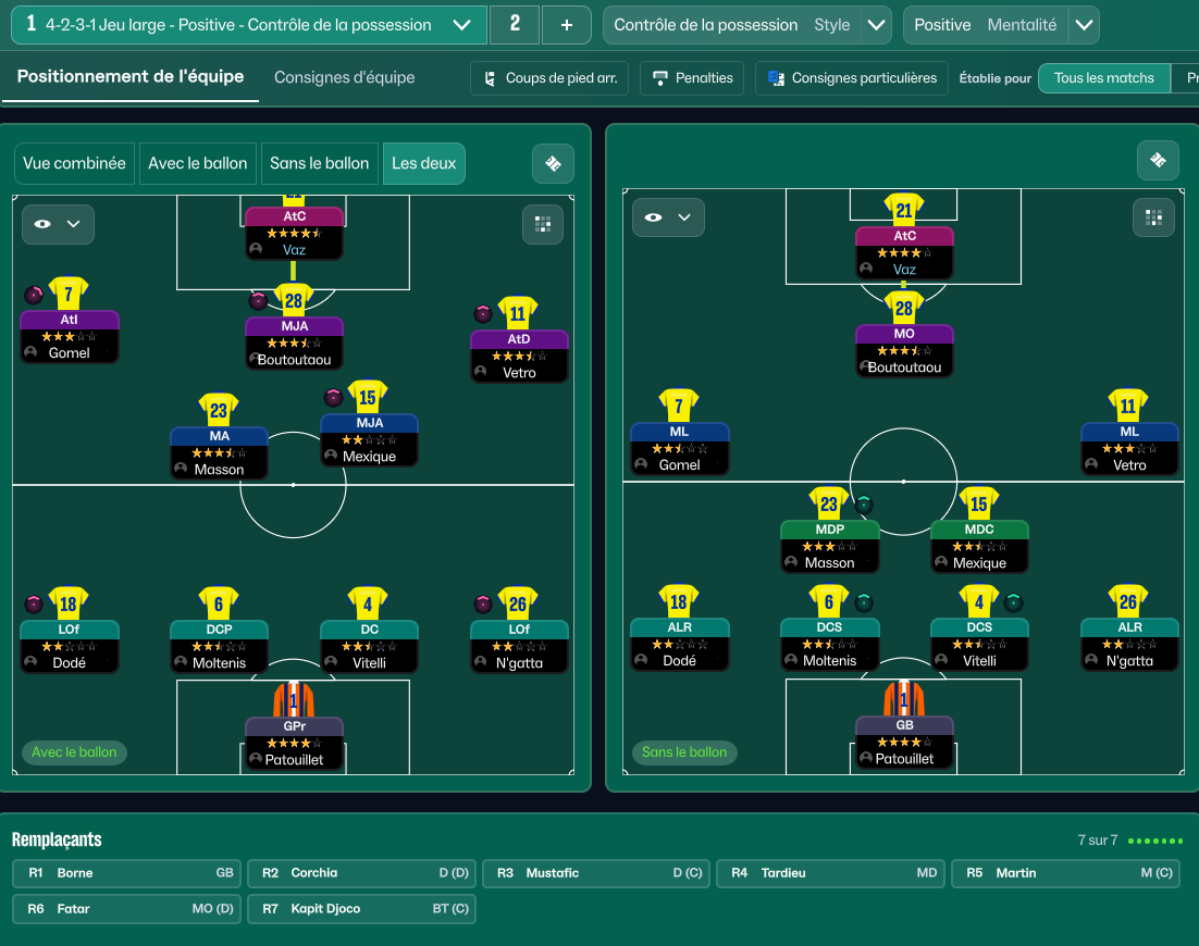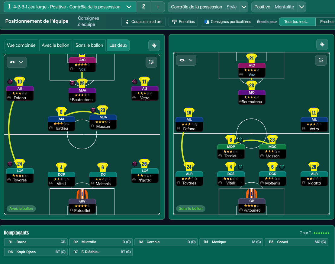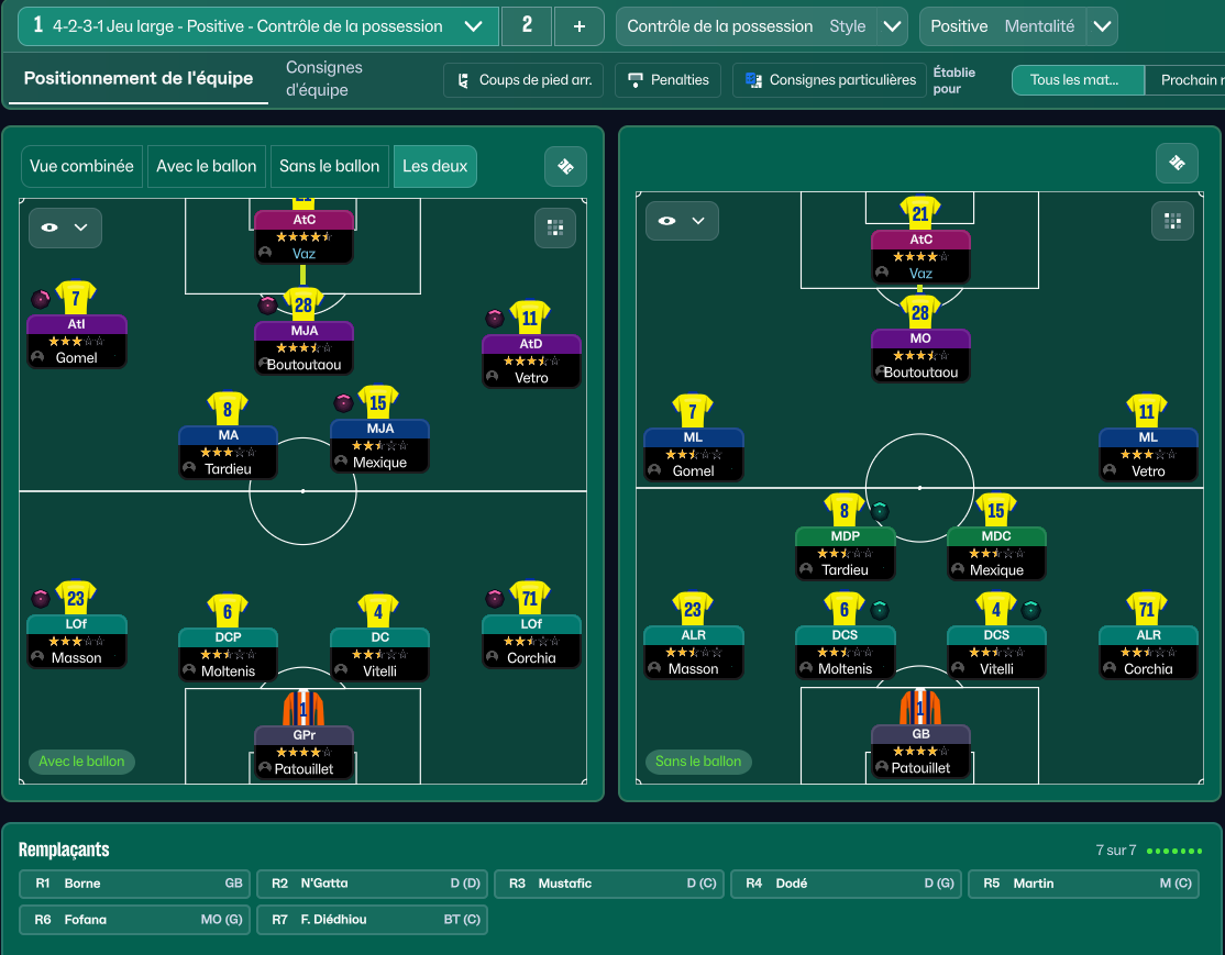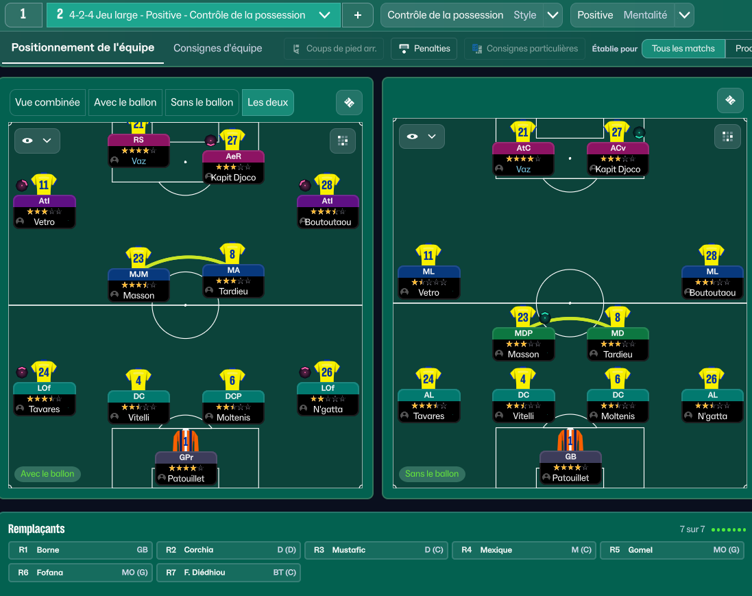 Pour ce match de coupe contre la lanterne rouge de Ligue 1, CORCHIA et BOUTOUTAOU sont de retour. VITELLI, un peu juste, est tout de mĂȘme sur le banc. Fort de bonnes prestations Ă lâentrainement, MUSTAFIC est titularisĂ©.