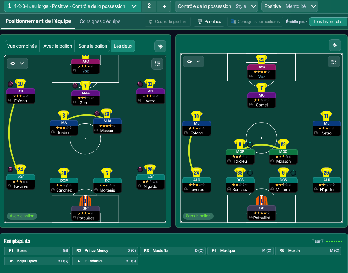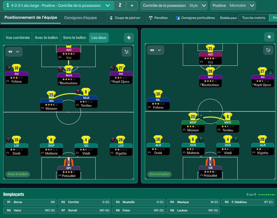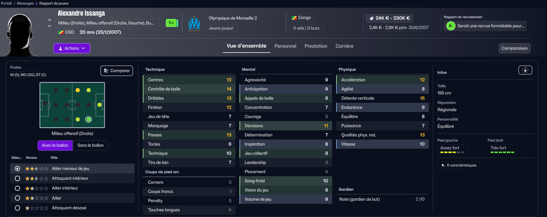 Nous craquons le portefeuille pour une attaque prometteur du Havre qui est nĂ© Ă Besançon : Noam OBOUGOU JACQUET. Son arrivĂ©e nous coĂ»te pas moins de 1M⏠! Il a un beau potentiel, mais son point noire est sa dĂ©termination trĂšs basse âŠ