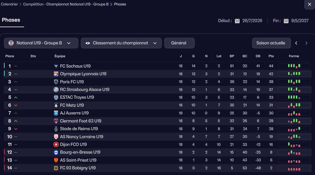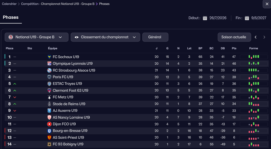 | 2/5/27 | Stade René-Blum | Stade de Reims U19 |