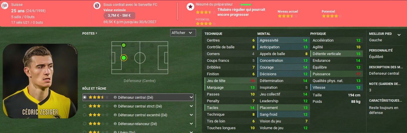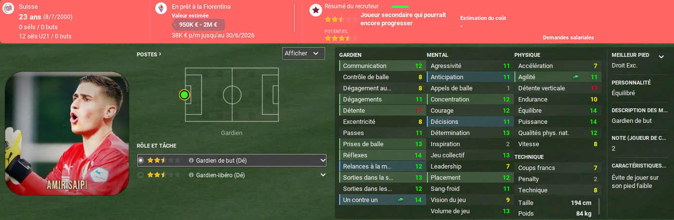 Ce mercato ressemble à une réussite. Nous avons su nous débarrasser de certains indésirables, nous avons récupéré une belle somme pour Hicham et nous avons renforcé les postes ciblés. Ulisses GARCIA notamment va pousser PEDERSEN sur le banc, ou en tout cas apporter une grosse concurrence. SAIPI, qui reste en prêt du côté de la Fio cette année, pourrait être le successeur de FRICK dans les cages. Enfin, nous notons le retour au bercail de Dereck KUTESA et Alexandre JANKEWITZ. Je visais Fabian RIEDER, YB avait accepté et le joueur était intéressé jusqu’à l’arrivée des clubs anglais dans la danse. Il signera finalement à Aston Villa.
