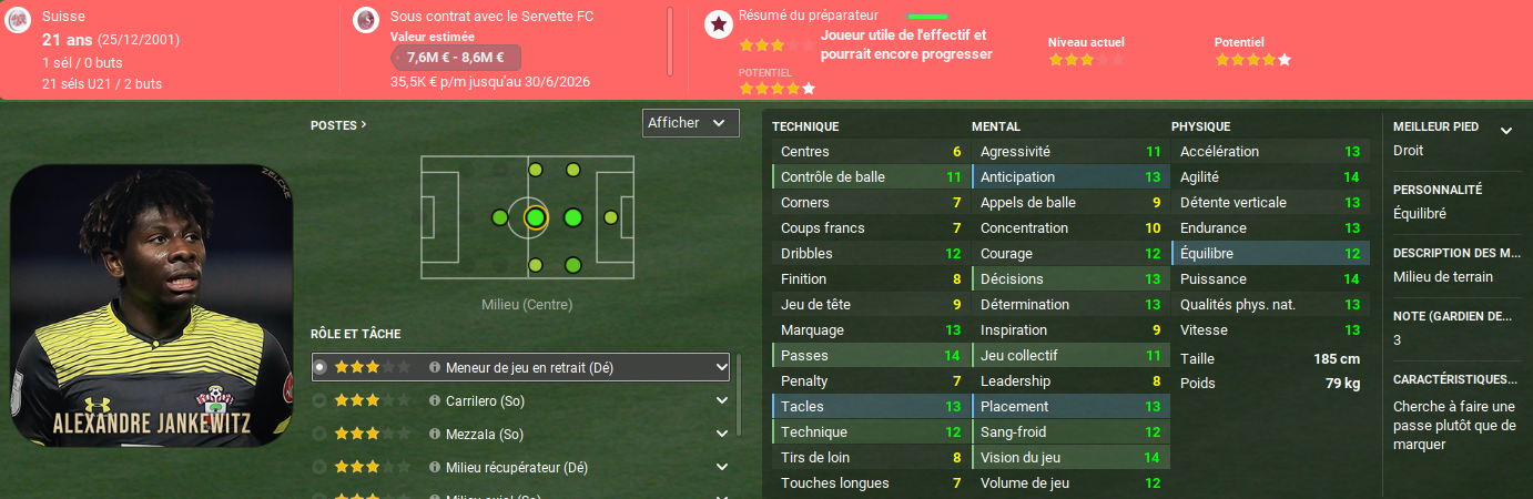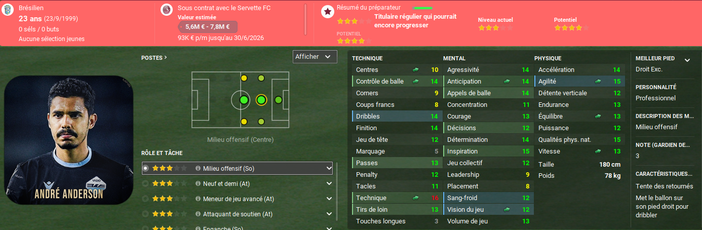 Debons, lui aussi, m’a l’air excellent. Il n’arrive pas forcément sur le poste où le besoin est le plus fort, mais son profil me plaît! Enfin, Lucas Godoy a déjà de bons attributs mentaux et pourrait avoir un rôle de remplaçant dans le futur s’il progresse bien techniquement.
