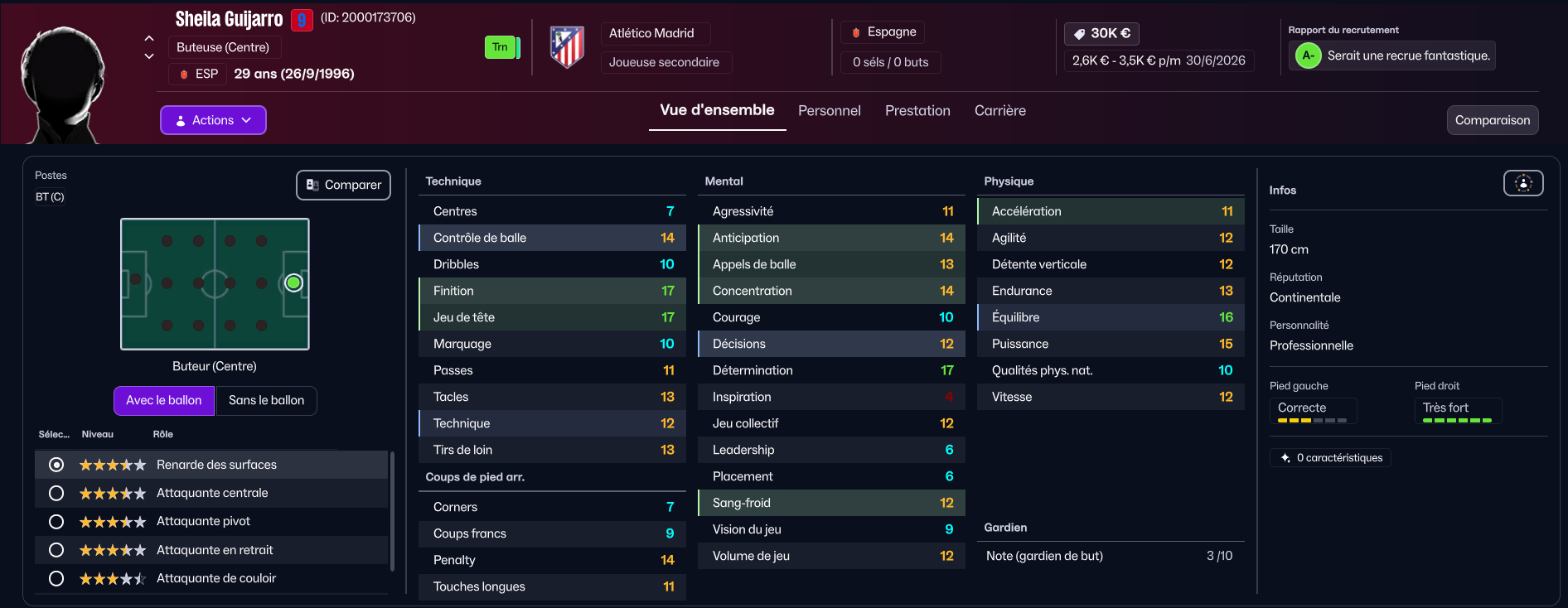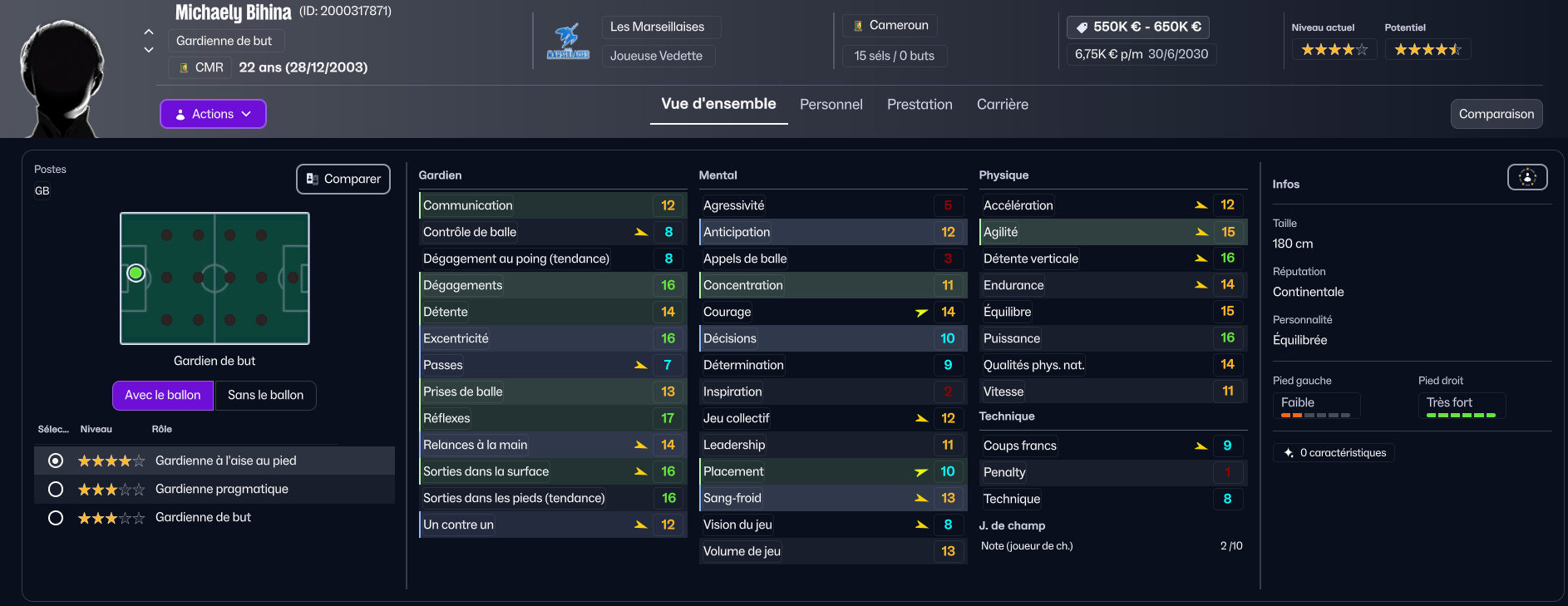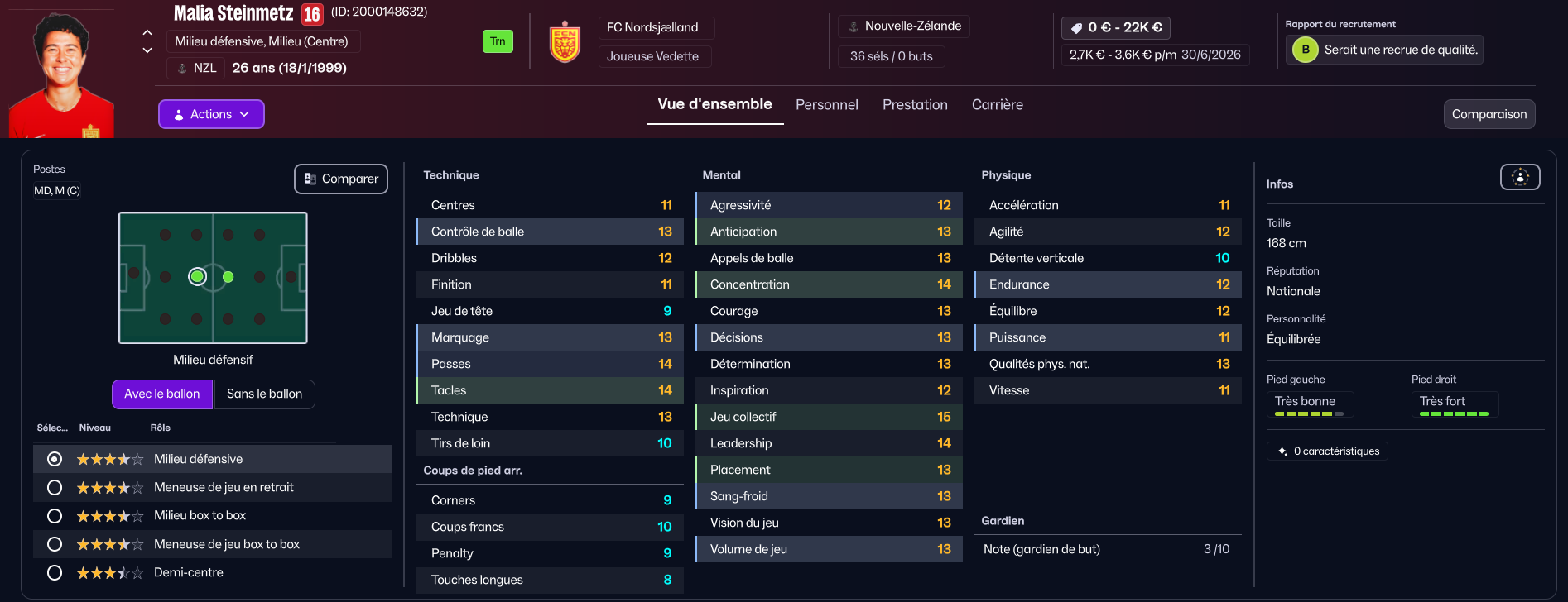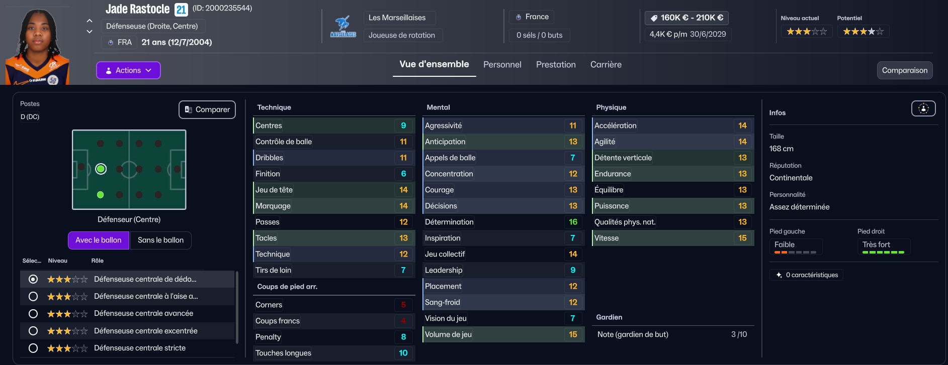 Une joueuse respectée, constante dans l’effort, exemplaire dans l’engagement. Une présence stable, capable de guider le groupe dans les moments de pression.