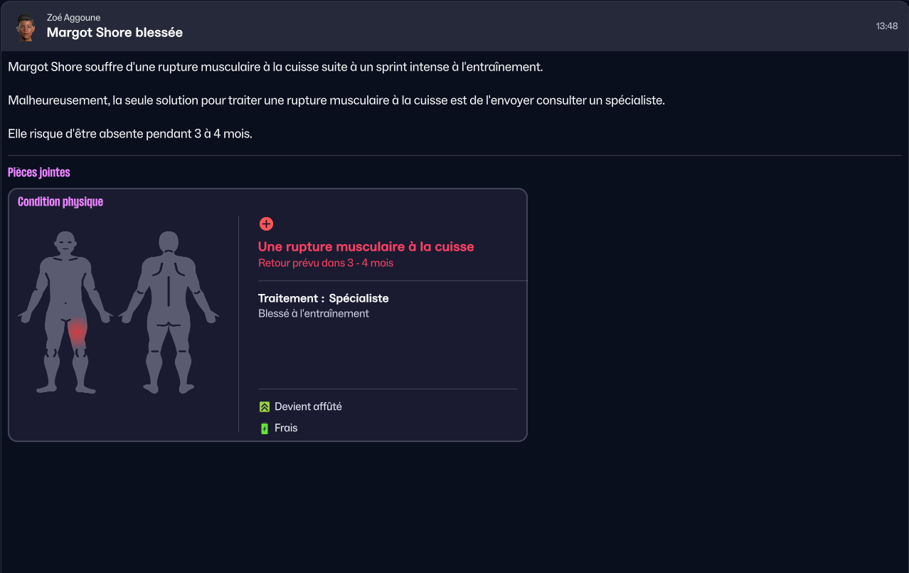 Objectif: anticiper blessures et rotations.