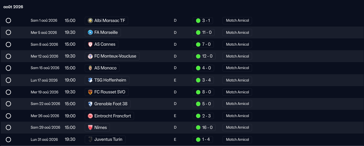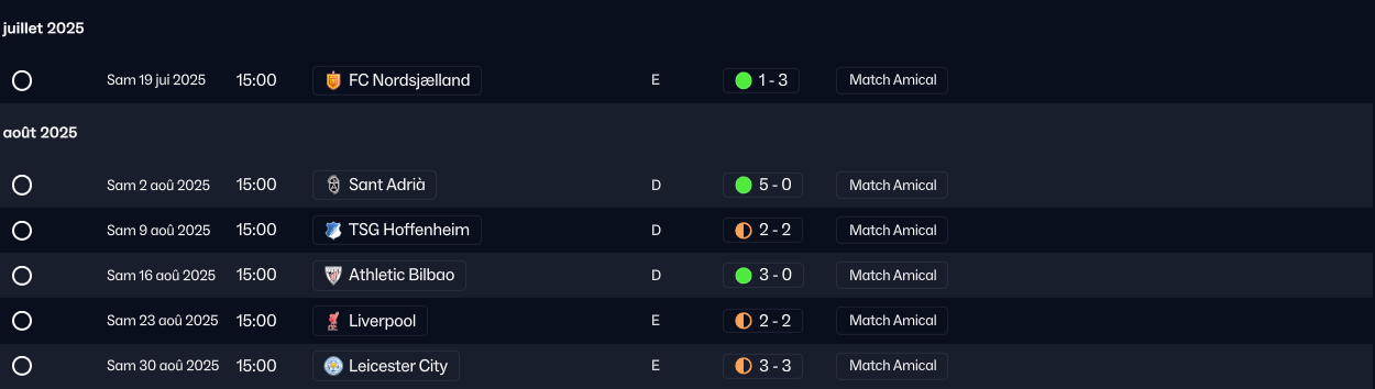 La préparation estivale enchaîne les confrontations face à des adversaires variés, chacun apportant un défi différent.